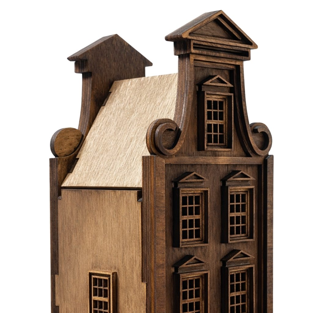 Forma lampionu inspirowana jest architekturą charakterystyczną dla europejskich kamienic, szczególnie tych spotykanych w miastach takich jak Amsterdam. Wąska, wysoka bryła oraz dekoracyjny szczyt dachu nawiązują do historycznych domów stojących przy kanałach. Tego typu budynki wyróżniają się elegancką fasadą oraz licznymi oknami rozmieszczonymi w pionie. Więcej informacji o tej architekturze można znaleźć na stronie