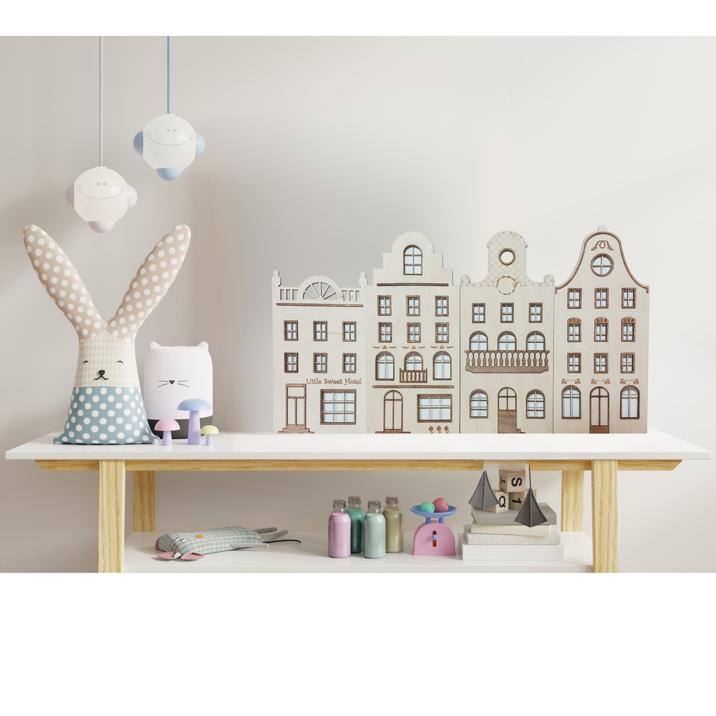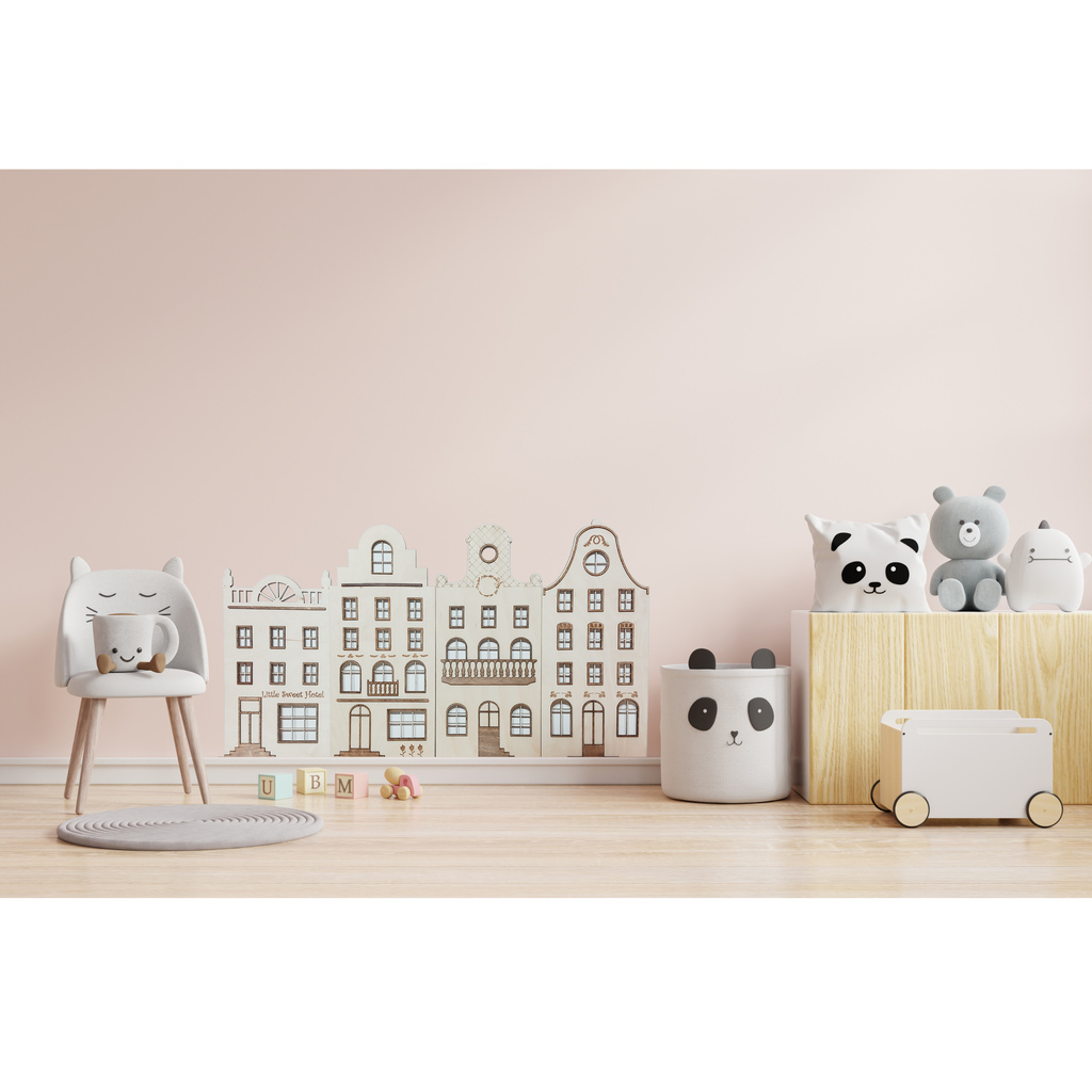 - Różne wysokości – efekt małego miasteczka 3D do pokoju dziecka