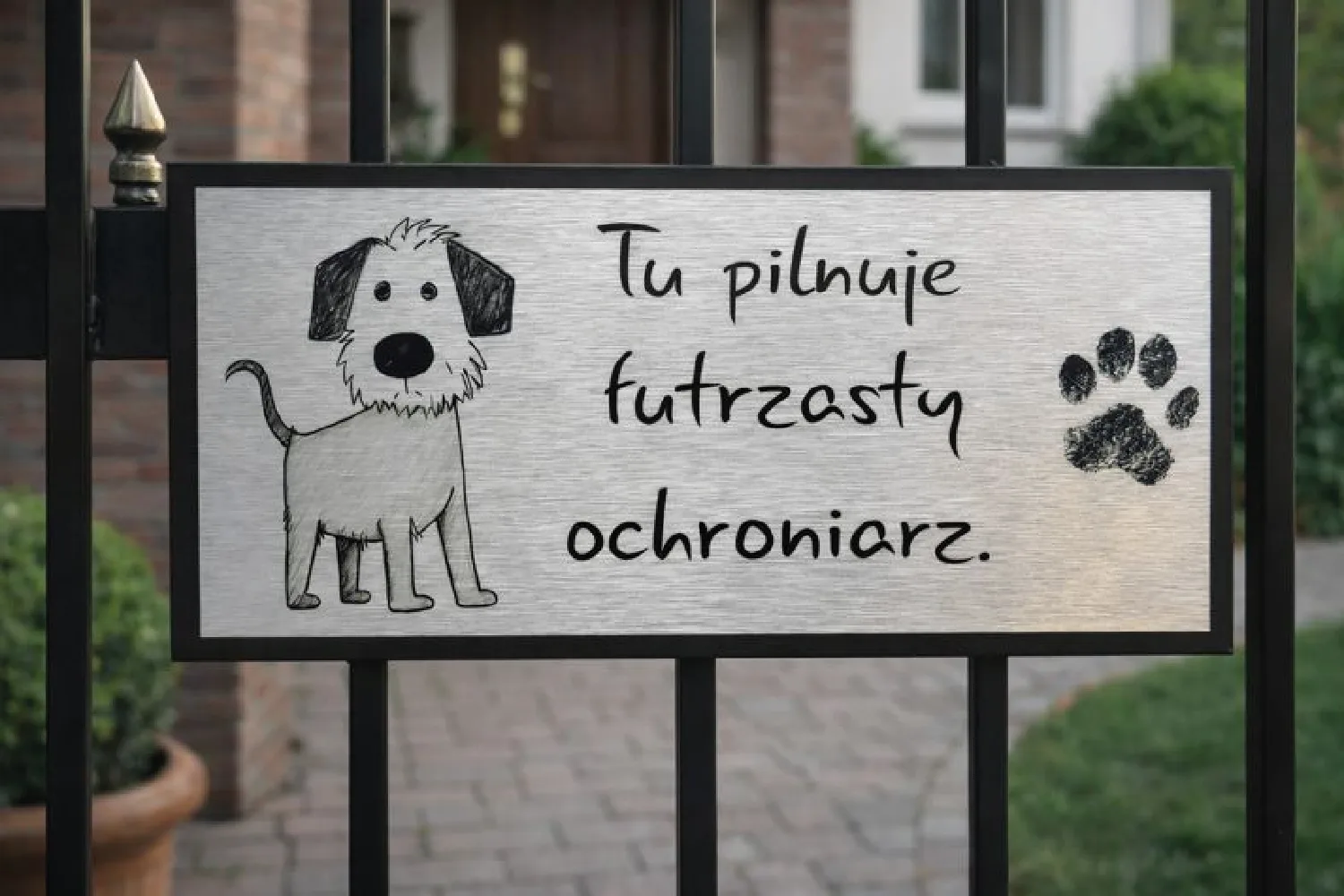 Tabliczka informacyjna to niewielki, ale praktyczny element wyposażenia posesji. Jeśli chcesz w prosty sposób ostrzec o obecności psa i jednocześnie dodać odrobinę humoru przy wejściu na teren posesji, będzie to dobre rozwiązanie.